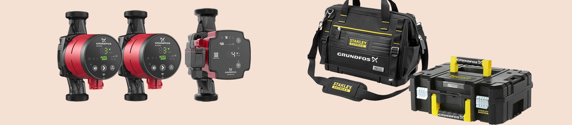 Zakupte dvě čerpadla ALPHA2 (nebo ALPHA2 GO) spolu s jedním čerpadlem ALPHA2 GO a získejte brašnu a box na nářadí